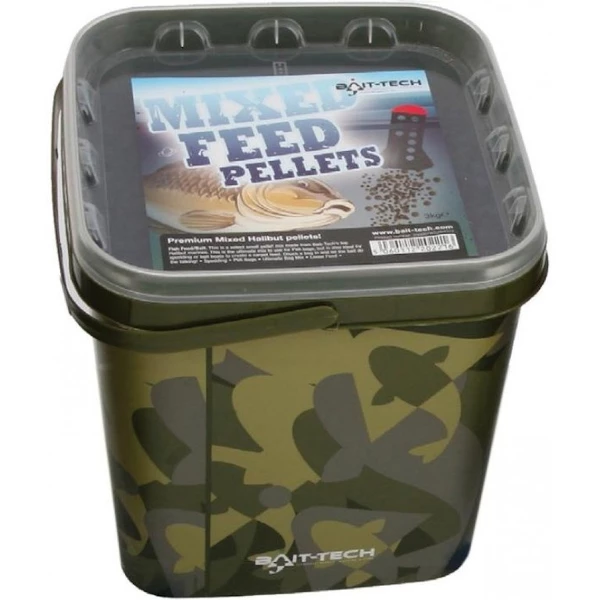 A pre-mixed selection of Bait Tech’s best selling 3mm, 4mm & 6mm halibut pellets brought to you in a re-sealable camo bucket. This premium blend is ideal for spodding, as a carpet feed, or fed in loose. A great grab and go option for adding to PVA bags and stick mixes too!