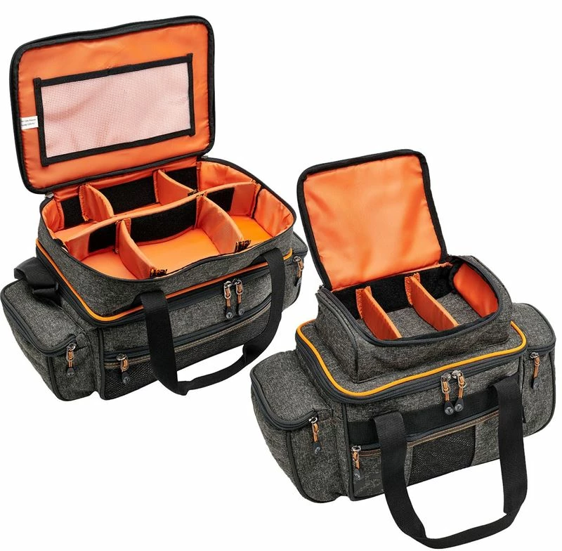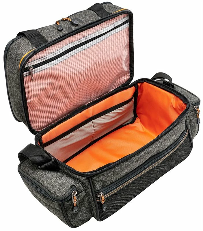 - Designed to hold a good mix of tackle and accessories, there are two main compartments in the top, and bottom. A couple of generous side pockets are ideal for smaller items.