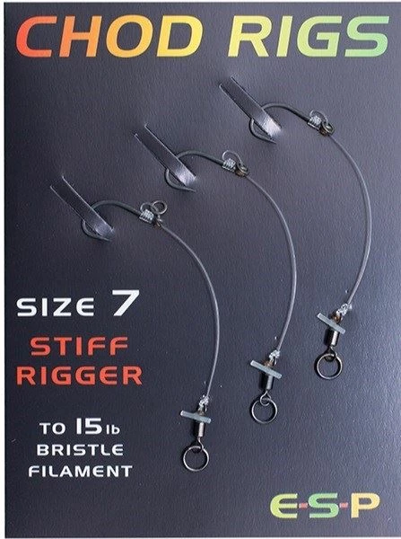 - The whipping knot on ESP Chod Rigs grips the hook very tightly ensuring the Bristle Filament comes off the hook dead in line with the shank.