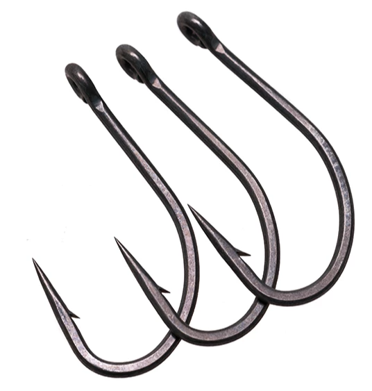 - This is the absolute ‘enforcer’ of the range. The medium length shank, with an almost crystal bend and inclined point make this an incredibly strong shape, further enhanced by the heavy forging and signature tempering process. The long, fine needle sharp edge, further enhanced by the slick Tufflon coating ensures excellent holds and the straight eye allows this pattern to be highly versatile as a bottom bait or pop up hook, with or without a kicker. The straight eye makes it especially effective for a Tungsten Loaded ‘D-Rig’ where the straight eye acts to increase the gape. These have already become a real favourite amongst their testers and looks set to be the ‘go to’ all-rounder for years to come.