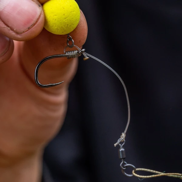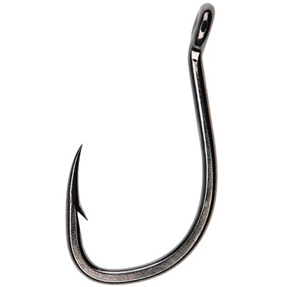 A unique specialised hook pattern featuring a turned out eye, wide bend and turned in point. Specifically designed for use with stiffer hooklink materials like fluorocarbon where the eye allows the hook to remain in line, without reducing the gape. Perfect for use with the popular hinge, chod and D-rigs.