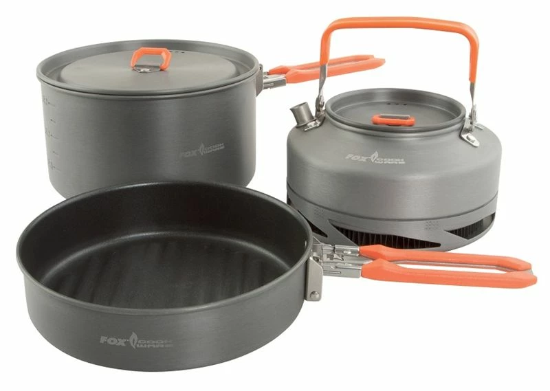 - Within the 3-piece Medium Cookset, you will receive a frying pan, medium saucepan and a 0.9l Heat Transfer Kettle. We have made the alumnium wall of the frying pan and saucepands thicker in order to alow a higher quality non-stick finish to be applied. As we all know, many current pans from fishing companies claim to be non-stick but how good are they really? We believe that our non-stick is the best you will find in a tackle shop.