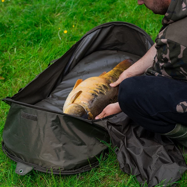 The Fox easy unhooking mat truly lives up to its name! Folding up for transport like a collapsible tent, with a flexible inner frame that opens out to hold the walls and floor taught. Manufactured from a tough 400D Khaki fabric with a soft PVC inner lining on top of an inflatable cushion. These give you all the security and confidence you need to safely deal with larger fish while on the bank. With pegging points should you wish to secure it in place, plus an additional cover so you can leave them set up when not in use. Supplied in its own carry bag with a pocket on the front ideal for taking a small set of scales or a carp care kit