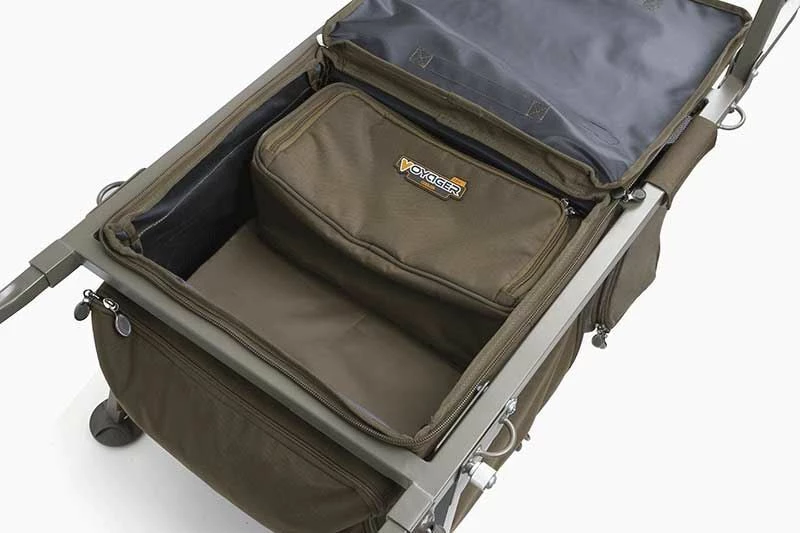 - Features extendable front bag rack – this allows the Voyager or Camolite Compact Bags or Low Level Bags (all available separately) to sit right at the front when using it in ‘session mode’ and carrying a bedchair. However, when fishing day sessions without a bed, simply retract the front rack and turn the Bags around so they face you. The design ensures that is remains balanced whether in short or long session mode
