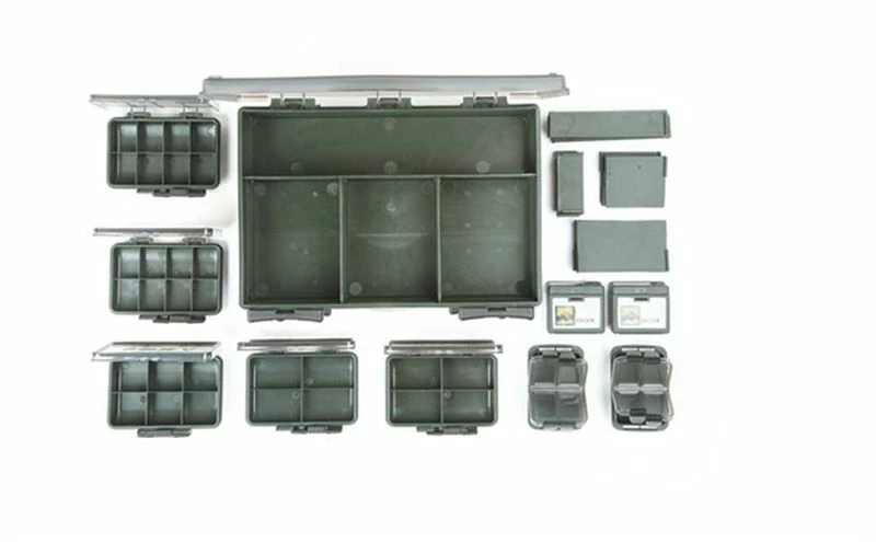 - The F-Box Deluxe Set is fully fitted with integral storage units which are designed to accommodate a multitude of carp fishing tackle items. The box itself is based on a unique double sided design which maximises storage space and allows easy access to tackle components.