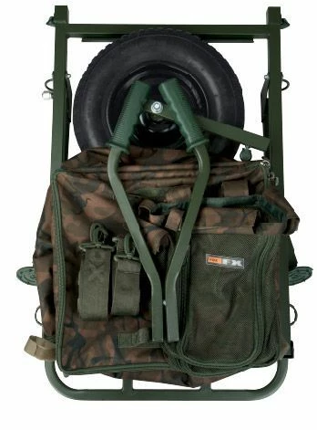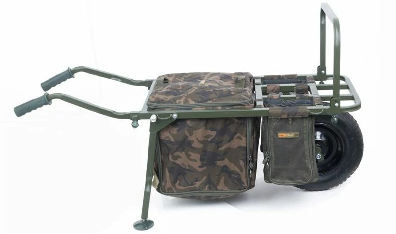 This has been designed to be one of the most versatile transportation systems ever released onto the market. Designed with the day session angler in mind this can also be adjusted for use on longer sessions where bedchairs and extra tackle is needed. The whole concept behind this is that when fishing shorter sessions you can leave the majority of your tackle on the barrow so that packing up and moving swims can be done quickly with minimum of fuss. This clever design also features an extendable front bag rack that can quickly convert to create more space for carrying extra tackle, like a bedchair. This conversion also redistributes the weight when extra items are added to ensure this remains balanced. Packed with features they come supplied with a drop-in central under frame bag that is styled in the Fox Camo pattern, along with two mesh storage pockets that sit either side of the wheel, that are perfect for storing items such as a 5ltr water bottle and/or bait. This has been designed to be the perfect transportation systems for short, day sessions. Both the central bag and two storage pockets feature zips on their sides allowing for quick and easy access to them without having to take any items off.