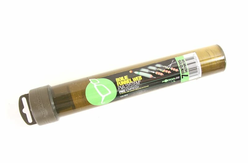 - Korda have redesigned all of the PVA system and refils making them more carpy, smaller and more economical. The Boilie System now has 7m of PVA on it, a new moulded outer tube with a special quick turn thread on the cap. Included inside the tube is a new look kompressa, with a soft touch handle. All systems are now colour coded to make choice easier. Boilie Funnel Web Systems and Refils are now colour coded in Green.