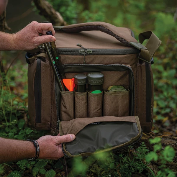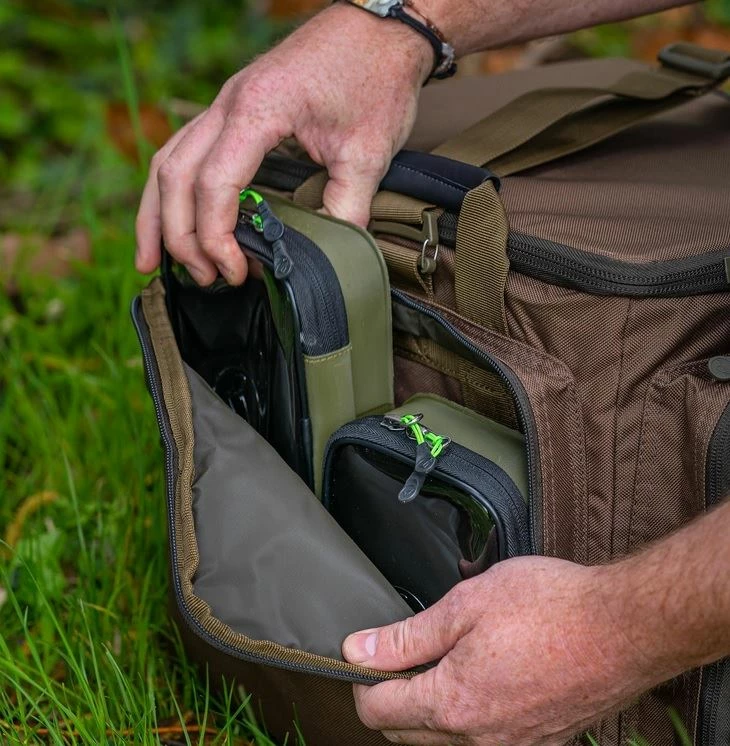 A cleverly thought out square shaped holdall, ideal for safely transporting a range of gadgets and fishing kit to the bank. Manufactured from the same durable waterproof fabric as the rest of the range, these have a central compartment boasting a 30L capacity, with pockets and compartments on the inner lining and underside of the lid itself. The inner lining is made from an easy to clean PVC material, and is supported with a fiberglass internal frame that keeps the bag rigid. On the outside there are four generous pockets, great for anything you need closer to hand. The bag also has four integrated cable ports so you can house a power pack inside and run cables out to your devices.