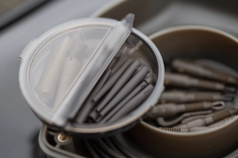 - A brilliant rounded rig storage solution for leaders and the like that are far better stored coiled up properly, than loose or stuffed into the corner of your rig bag. Featuring a 2 section design with a larger lidded main section to deal with your leaders and a smaller, removable lidded container in the middle. Perfect for storing spare swivels and rig clips to go with the leaders in the main compartment. All designed to fit the available tackle box from the same range.