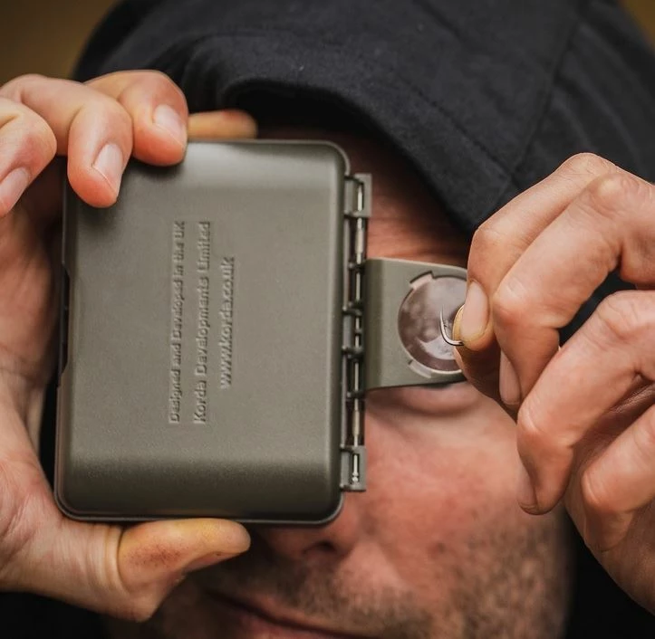 Just what you need to keep your hooks organised and in top condition. If you’ve spent the time honing sharpening and perfecting your hooks, only to chuck them back into the packet they came from. This neat little box will hold up to 67 individual hooks separately, gripping them securely in place with a slotted silicon insert. With a magnetic closing lid that also features a handy magnifying lens built in ideal for checking your 100% happy with your hooks before you use them.