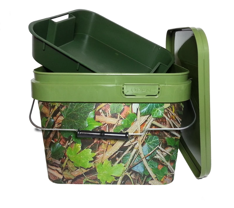 - A new range of hard-wearing square bait buckets finished in a unique camo pattern.