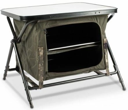 - Adjustable twist-lock legs allow you to get this perfectly level, stopping your precious things rolling off in the night and making it the ideal spot to sit on your laptop or tablet for bankside viewing. You can even store your spare batteries, chargers and other essentials in the handy zipped storage compartment beneath.