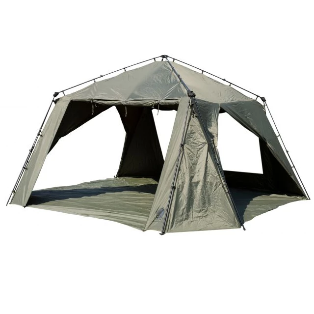 - If your heading away for long-stay sessions at home or abroad this is perfect for locating your central base camp and socialising away from your bivvy with your friends. Fully waterproof and great in all weathers, you can tie the doors back and open the full-size side panel mozzy mesh side panels to keep you cool in summer, or baton down with the removable PVC front door if the weather turns nasty.