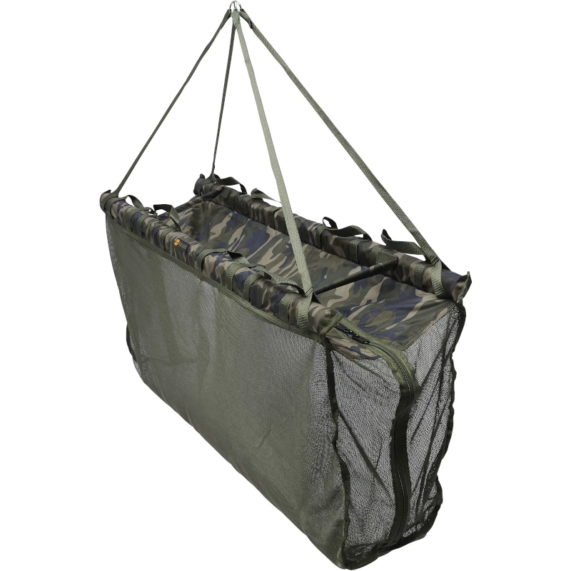 Premium next level fish care featuring the brands unique ‘Seam Safe’ system that removes any potential contact points between stitching on the product, and your fish inside. Featuring a soft dark freeflow mesh, that allows plenty of water exchange. With twin frame separators keeping the two main bars apart, and the mesh spaced out. Built to last, with baffled corrosion resistant zippers and reinforced multi point carry handles. The tether supplied has a quality feel, with a safety clip and screw thread bankstick attachment.