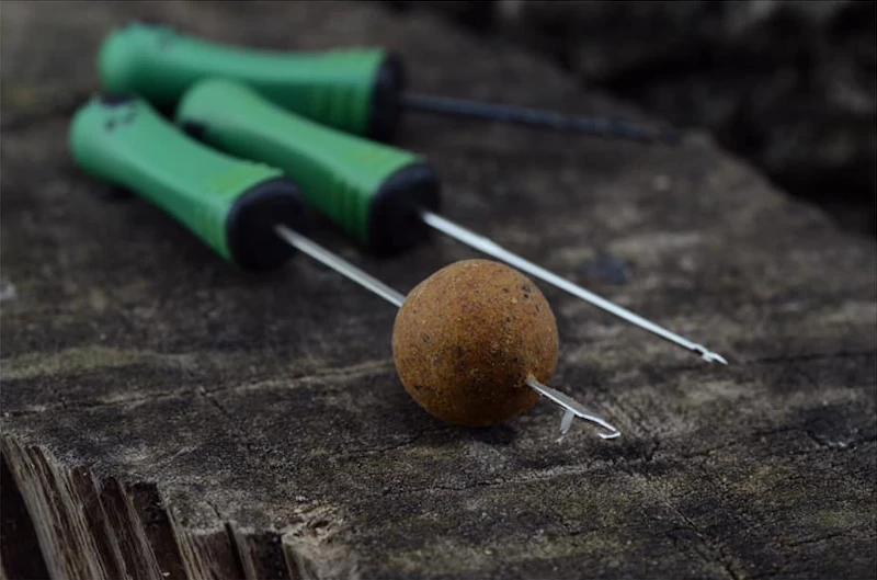 A clever baiting tool with a simple pin that closes the loop, trapping your line or loophair in place. Simply pass through your chosen bait , attach the hookhair loop and draw back through.