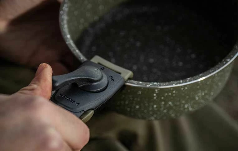 - Available in three sizes, each cookware set includes a non-stick frying pan and saucepan. Featuring stainless steel bases which are ideal for a number of heat sources such as gas burning stoves. For versatility, the handle is detachable and can be used for both pans!