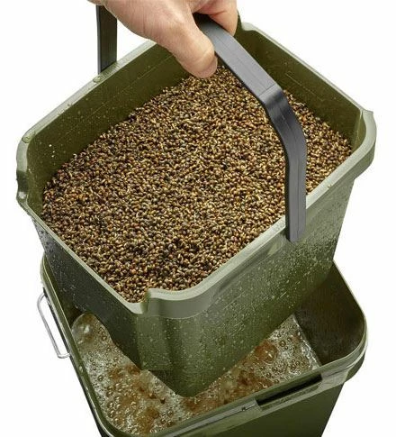 Especially handy when spodding/Spombing when you don’t want to get covered in spod mix juice as it can get extremely cold in the winter! Larger baits such as boilies can be glugged and then the remaining liquid can be reapplied to another batch of baits, thus reducing liquid wastage. Designed to withstand freezing temperatures, which means that if you fill your bucket with particles and only use half during your session, simply snap on the lid and place in the freezer until your next session – just give the bait inside enough time to properly defrost before you attempt to use it! Purpose-designed to store anglers’ baits which are kept in a liquid, and features a revolutionary lift, twist and stack process to drain off the liquid when accessing the contents Once the bait has been used, the liquid that remains can be preserved or frozen for future use. The oily, goodness-packed juice from a bucket of cooked hemp is wonderfully attractive to carp and perfect for rehydrating air-dried boilies.