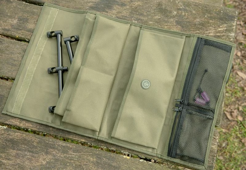 A great idea for organising all your rod rests and metal wear in one simple fold up bag. With room to take up to 8 individual bank sticks, along with enough storage space to separate additional buzz bars, rest heads and alarm batteries etc.