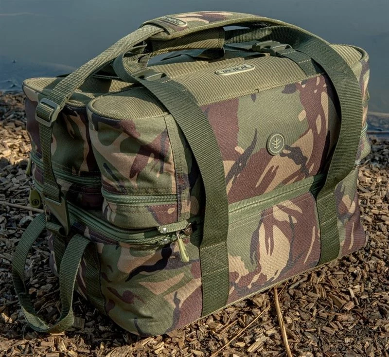 A clever well thought out modular design based on the existing bestselling range of compact tackle transport systems. Featuring the same 1200D material as the rest of the range and sporting the same appealing camo livery. This has a large main compartment, complimented by two additional smaller pockets that fold out and zip on and off the main bag. With wtin carry handles and a comfy shoulder strap included.